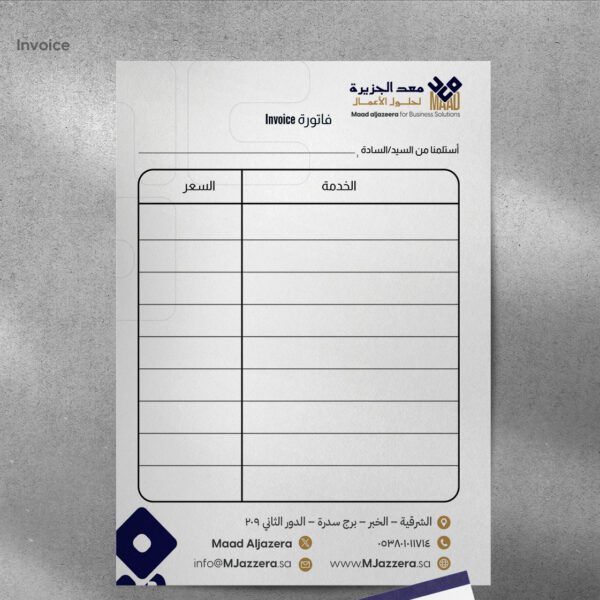 يتم تسليم العميل جميع الملفات المفتوحة الخاصة بالتصميم والطباعة، بالإضافة إلى التعديلات النهائية، مع إمكانية تخصيصها بشكل كامل باستخدام بيانات الشركة